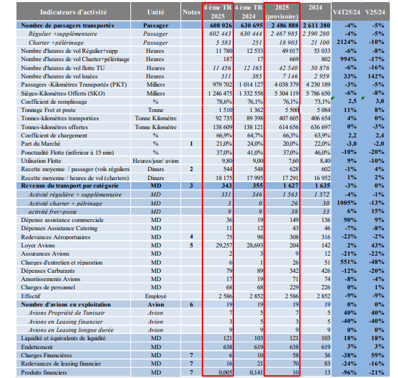 L'analyse de l'activité de Tunisair pour l'année 2025 montre la tendance suivante: