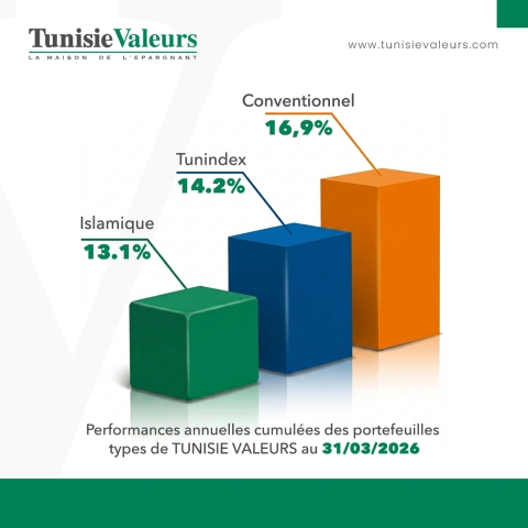 Au terme du premier trimestre 2026, les portefeuilles types de Tunisie Valeurs confirment leur solidité en affichant des performances supérieures à celles de l'indice de référence.