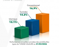 Au terme du premier trimestre 2026, les portefeuilles types de Tunisie Valeurs confirment leur solidité en affichant des performances supérieures à celles de l'indice de référence.