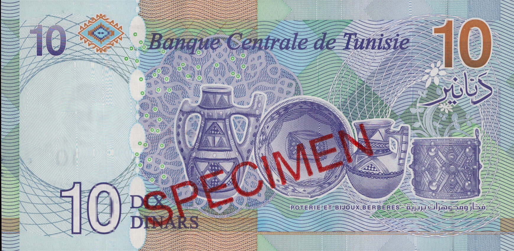 Article premier : La Banque Centrale de Tunisie met en circulation, à compter du 17 octobre 2025, un nouveau billet de banque de dix dinars (type 2020) ayant cours légal et pouvoir libératoire, portant les mêmes motifs, caractéristiques et éléments de sécurité que ceux du billet de dix dinars de même type actuellement en circulation, à l’exception :